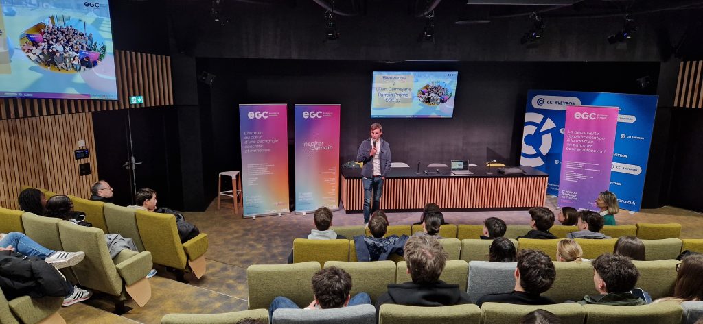 Né en 1992, Lilian CALMEJANE, issu des rangs de l’EGC Rodez (2010-2013), est un coureur cycliste de très haut niveau (amateur puis professionnel, notamment sur le Tour de France et de Tour d’Espagne). Il est aujourd’hui notamment consultant pour le Groupe France TV pour le cyclisme. Lors de la rencontre, Lilian CALMEJANE a notamment partagé son expérience de sportif de haut niveau, et fait le parallèle en être leader d’une équipe cycliste et entrepreneur ou dirigeant. Alumni de l’EGC Business School Rodez, il a témoigné devant les étudiants de sa méthode pour suivre une carrière sportive de haut niveau et des études, ainsi que sur le processus de reconversion dans la vie professionnelle à l’issue d’une retraite sportive. « Avec l’EGC, vous avez trois années d’études pour vous révéler, vous découvrir et pour apprendre à vous connaître. Vous ne serez pas la même personne à l’issue de votre formation. Les gens doutent pour vous, mais vous ne doutez pas !« , a t-il affirmé devant les étudiants de l’EGC.